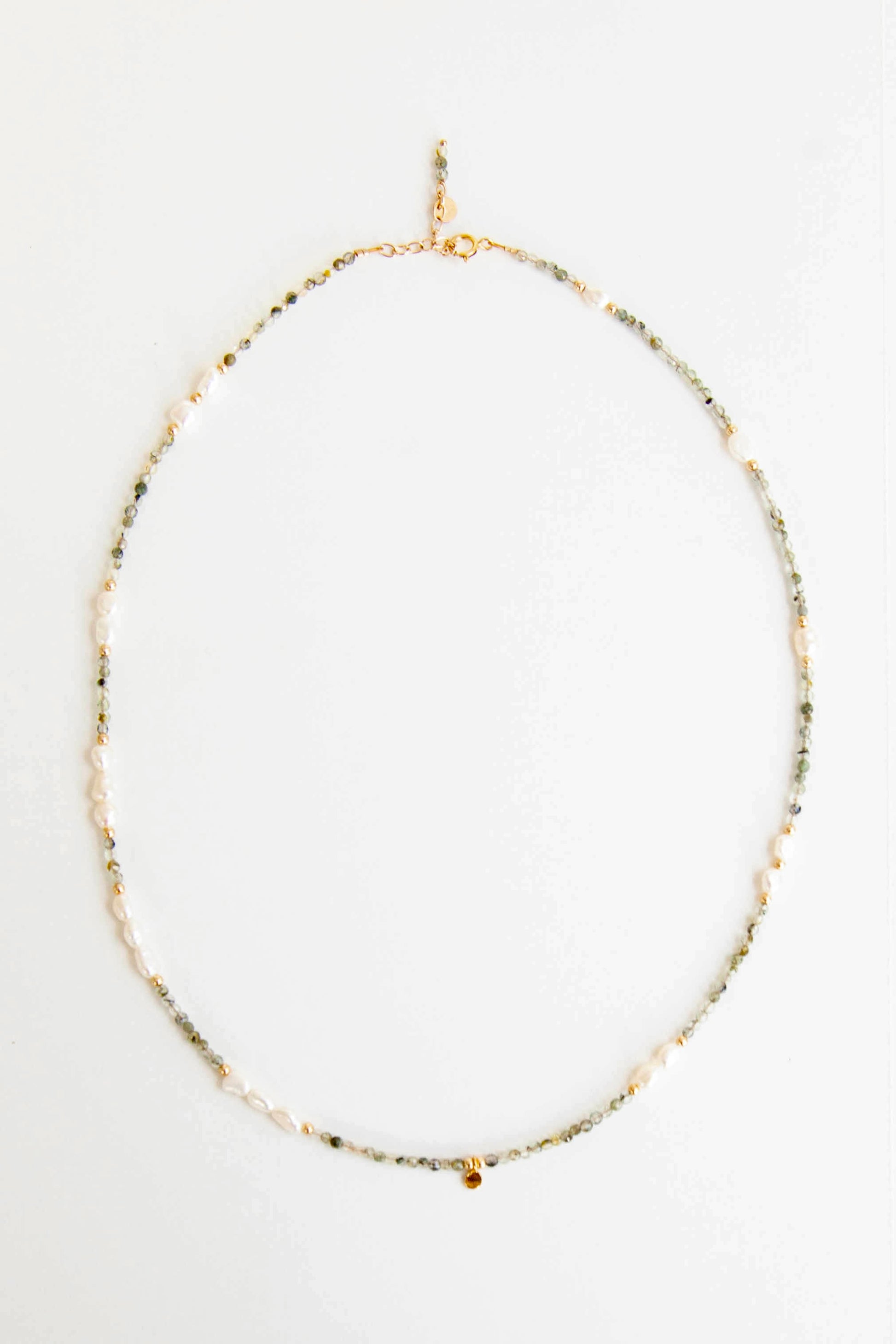 This beautiful 14k gold filled necklace and bracelet set is designed meticulously, with each bead purposefully strung. Featuring gemstones and freshwater pearls, it's perfect for any occasion.