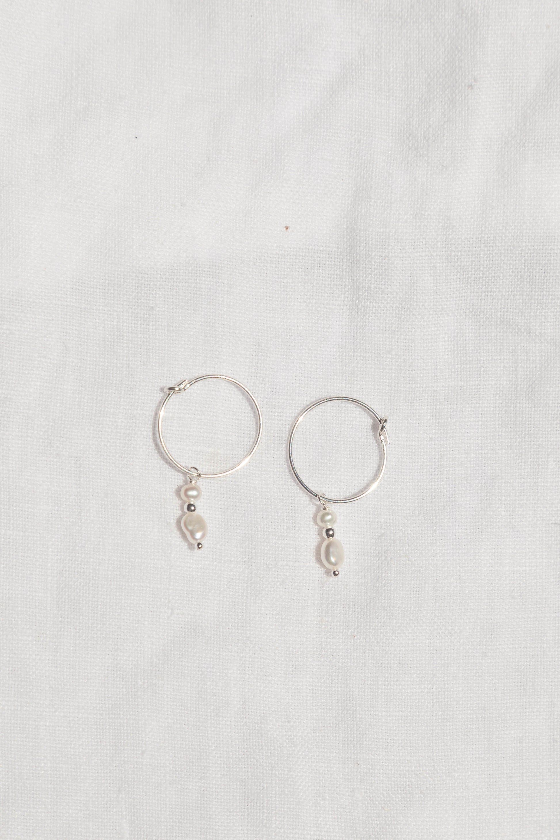 These minimalist hoops feature lustrous freshwater pearls creating a simple yet timeless design. Whether you're dressing up or keeping it casual, these versatile earrings are the perfect accessory.
