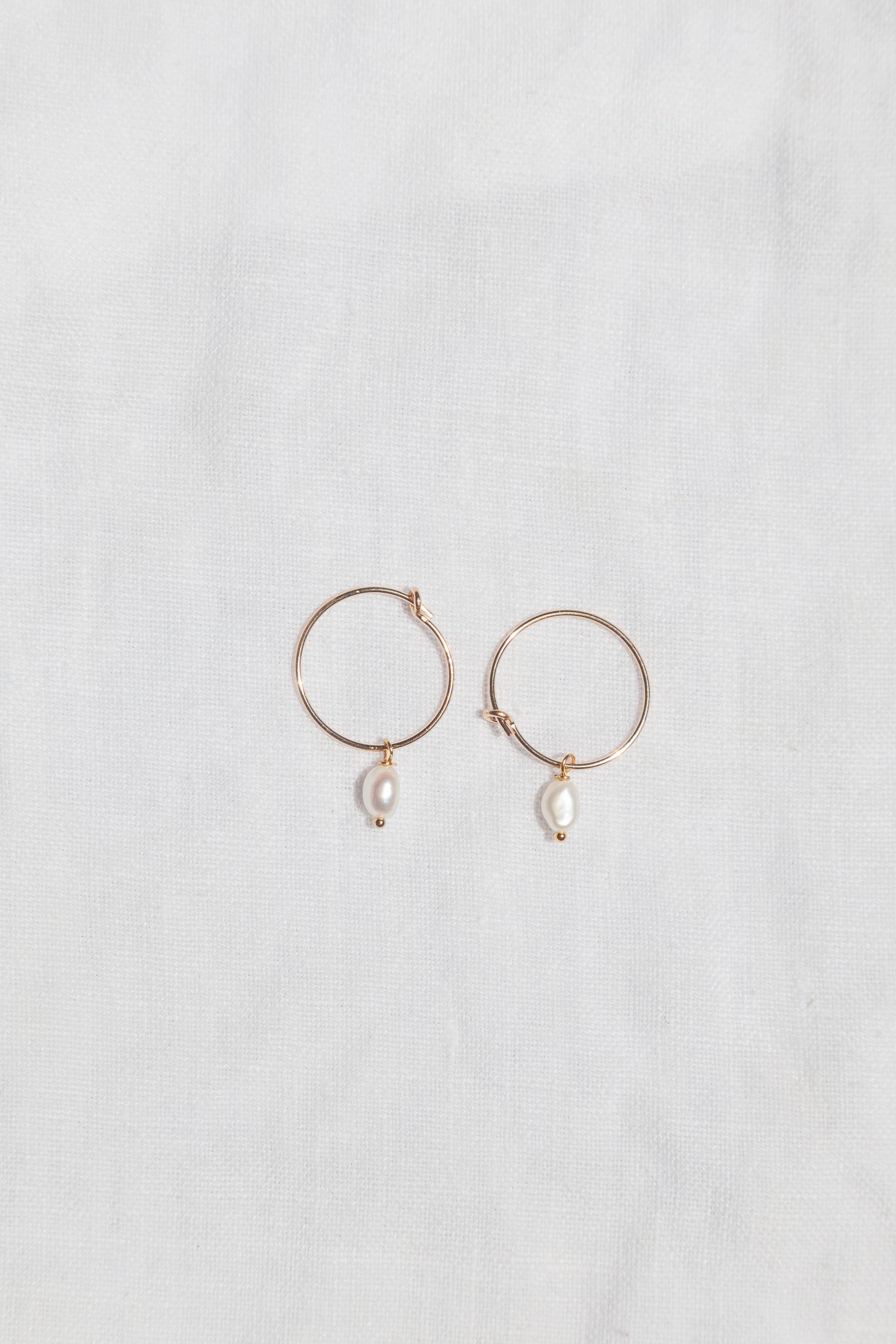 These minimalist hoops feature lustrous freshwater pearls creating a simple yet timeless design. Whether you're dressing up or keeping it casual, these versatile earrings are the perfect accessory.