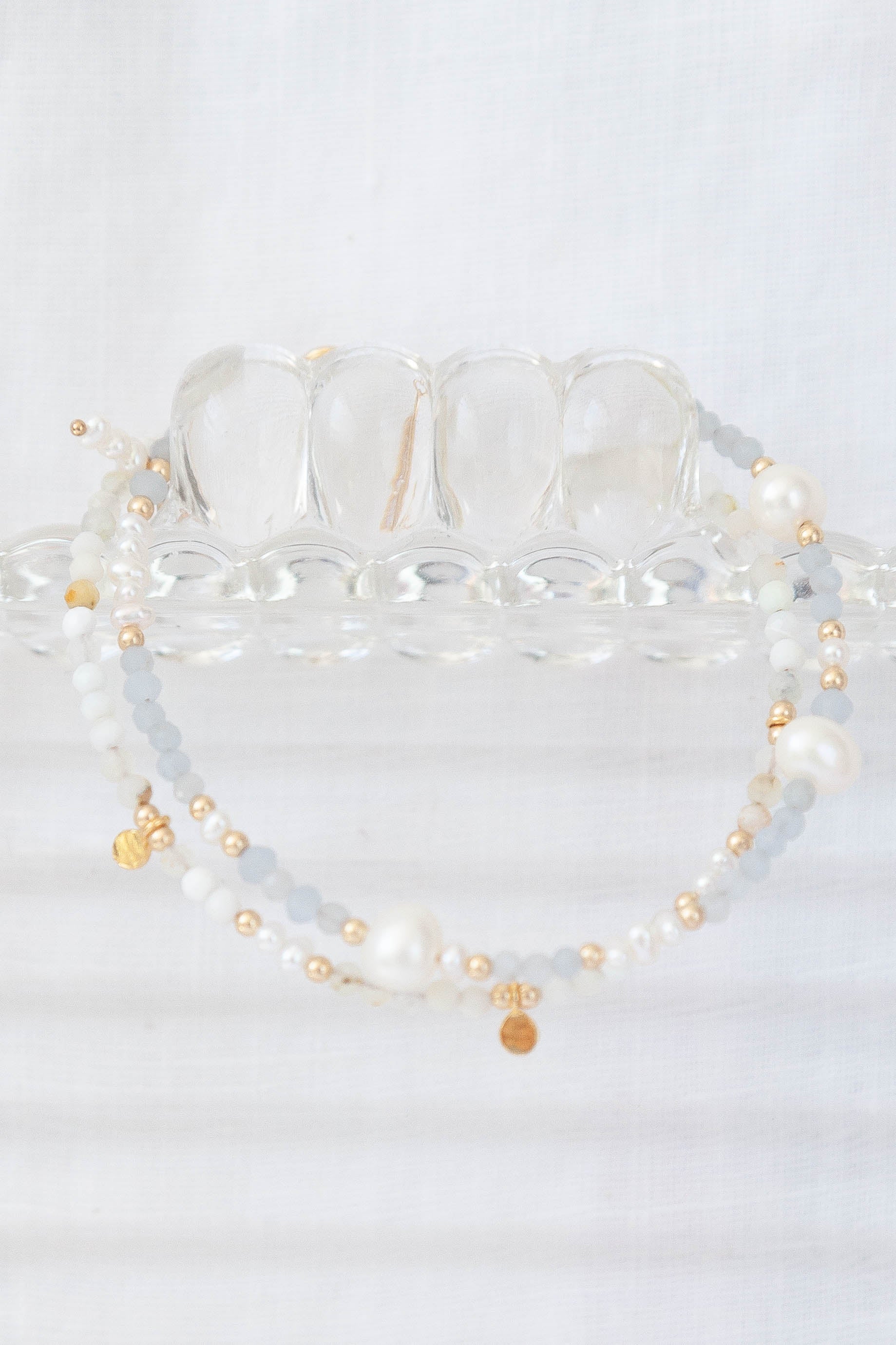 Featuring gemstones and an array of freshwater pearls, each bead is meticulously hand-strung. This bracelet stack is the perfect accessory to elevate any outfit. The two in one feature saves $15, as opposed to buying two seperate bracelets.