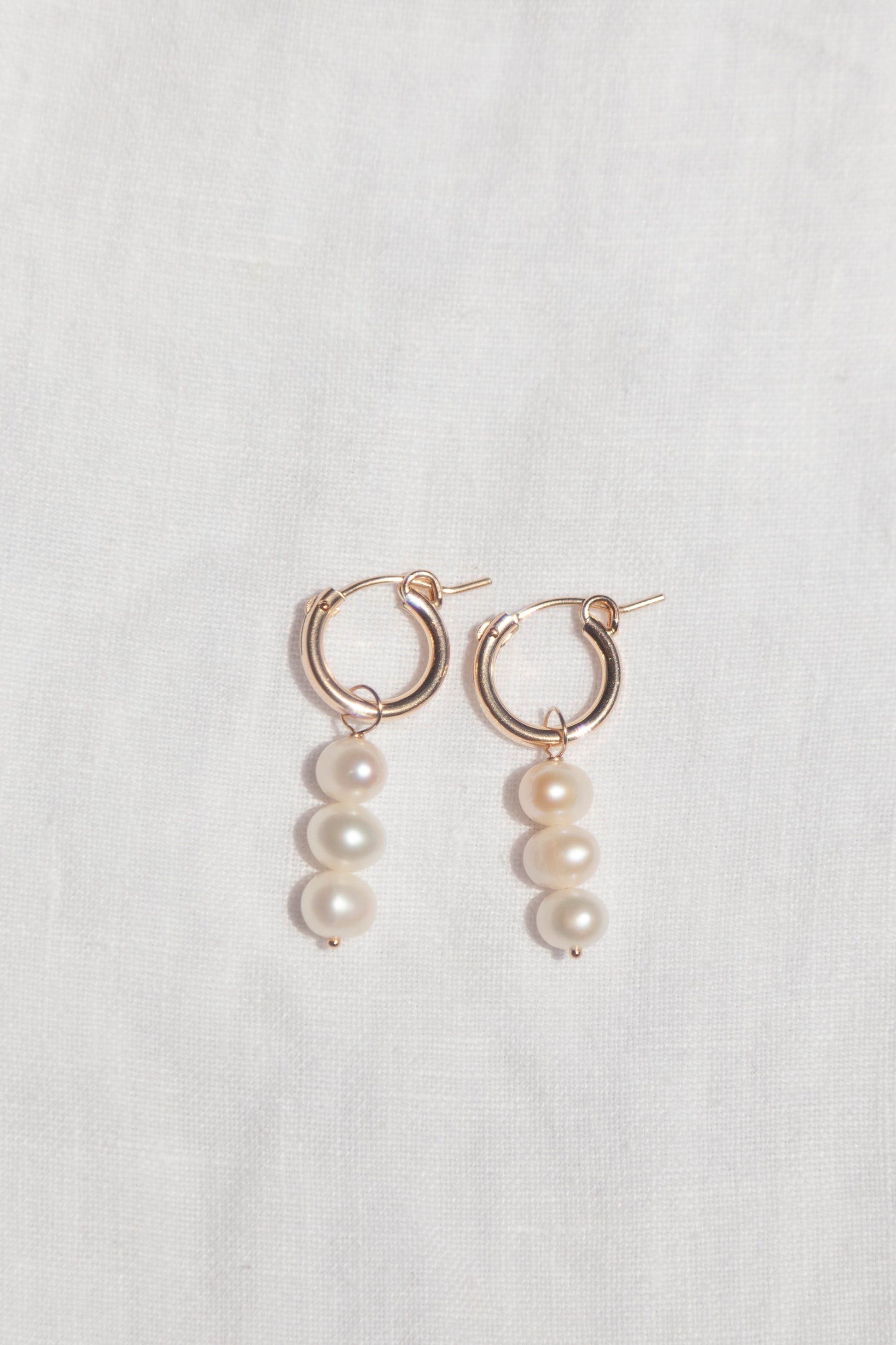 Introducing our deluxe hoops, the perfect hoop to elevate your look. Our deluxe hoops feature stunning freshwater pearls on a 14k gold filled hoop.