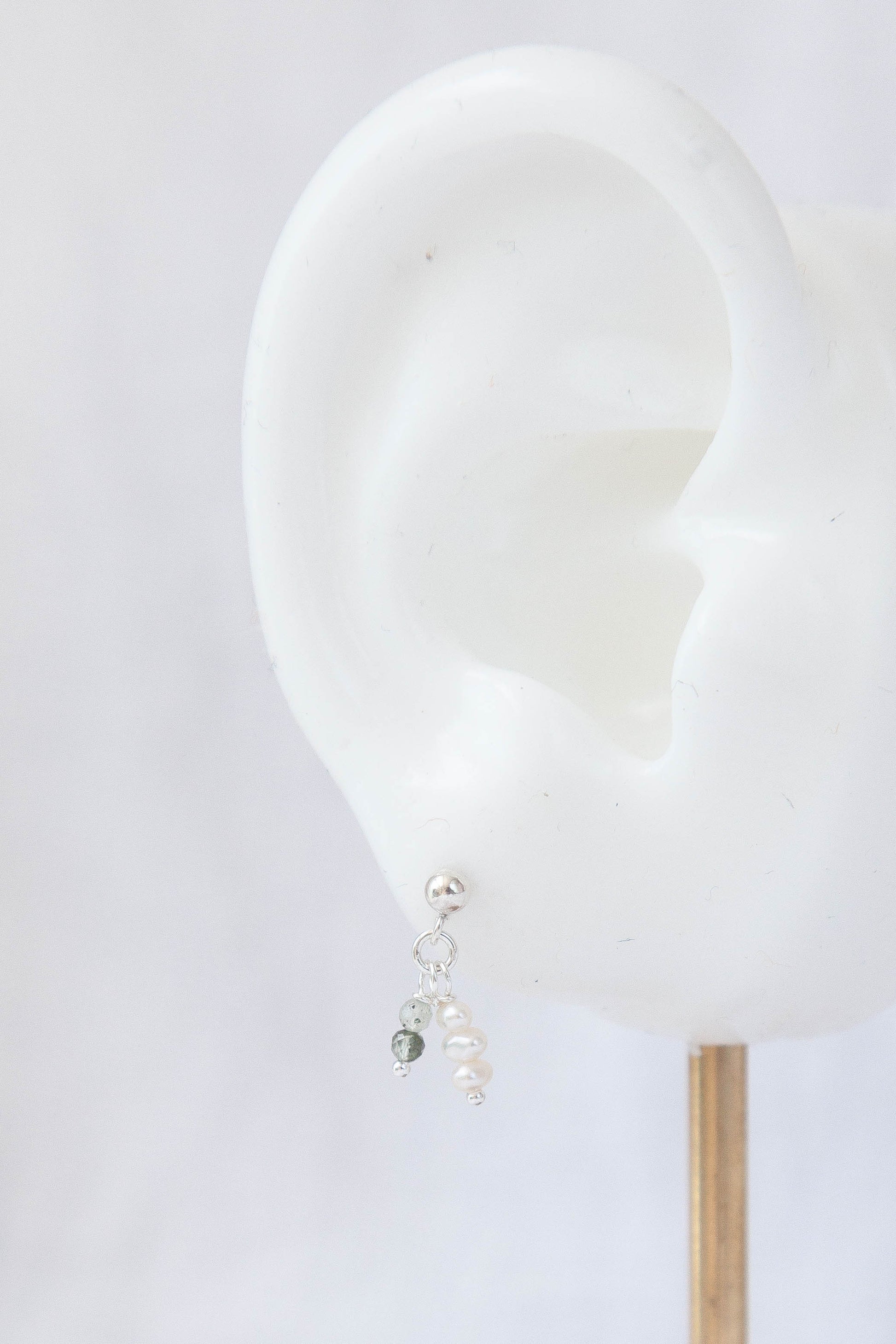 These minimalist ball post earrings feature lustrous freshwater pearls paired with gemstones, creating a simple yet timeless design. Whether you're dressing up or keeping it casual, these versatile earrings are the perfect accessory.