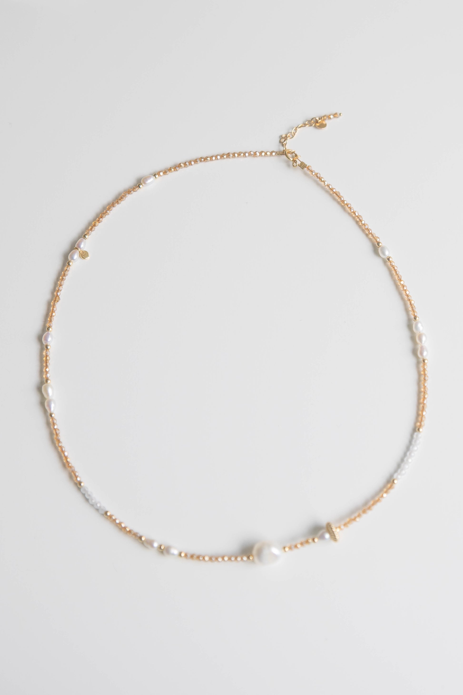 Designed to dazzle from golden hour to last call, this matching necklace and bracelet set from Society 14 is your new go-to for elevated evenings. Featuring lustrous freshwater pearls and delicate, light-catching semi-precious stones, each piece is handcrafted with 14k gold-filled components for lasting luxury and understated glamour.