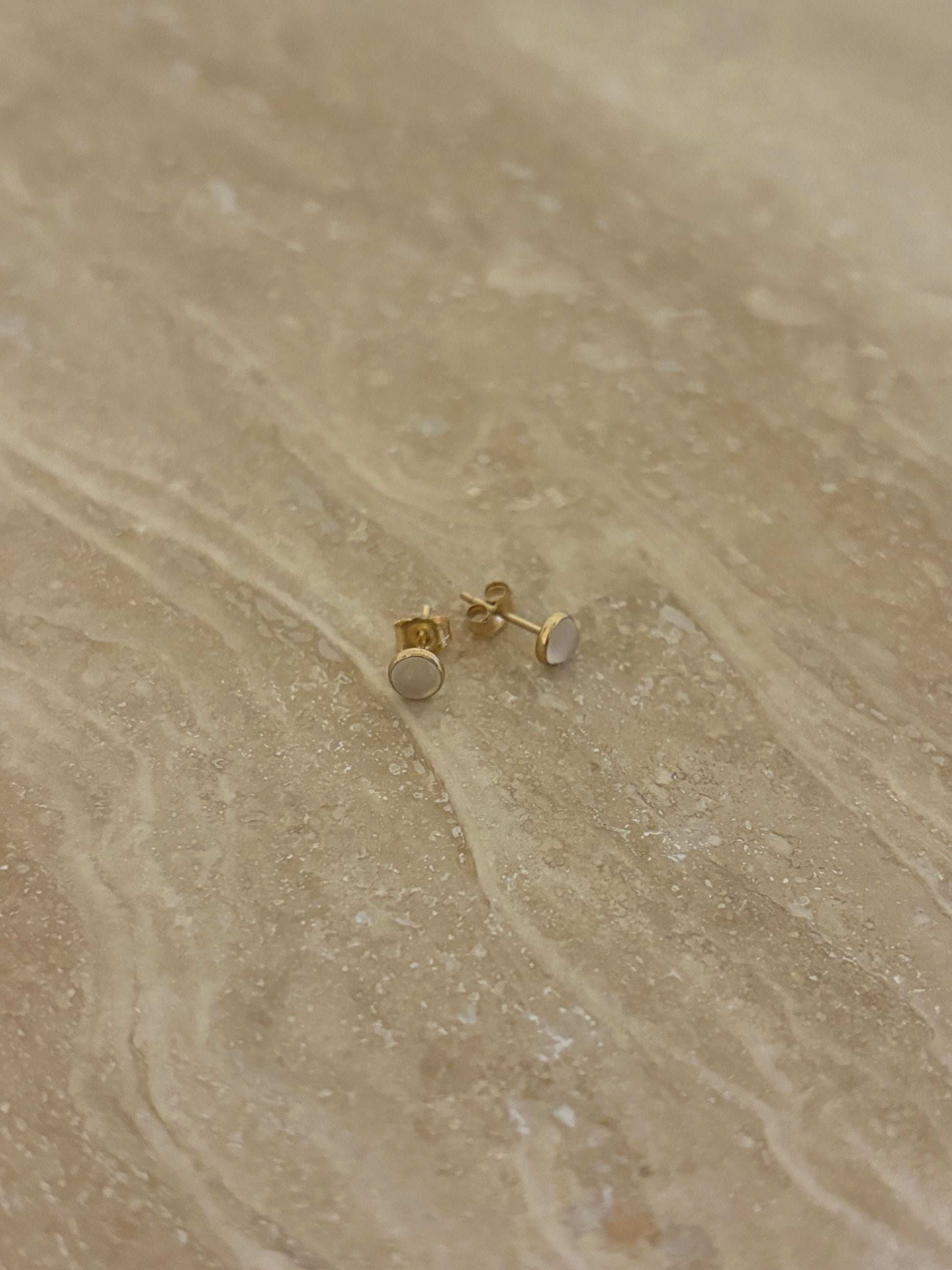 These 14k gold filled white onyx studs are perfect for every day wear or paired in a stack.
